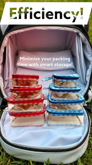 Stay neatly organized with this 4 -piece transparent storage pouch set, available in vibrant red and blue borders. Each set includes 3 different sizes, perfect for keeping your essentials visible and within reach. Crafted with clear PVC material and sturdy zip closures, these pouches are ideal for travel, toiletries, cosmetics, baby items, or daily utility storage. Set of 4 pouches (available in red & blue) Transparent design for easy content visibility Durable zip closure with convenient side handle Lightweight, compact & easy to carry Perfect for travel, home storage, or gifting.