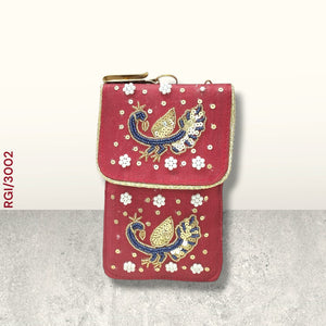 Add a touch of tradition and elegance to your accessories with our beautifully handcrafted Peacock Embroidered Mobile Sling Pouch (RGI/3002). Made from high-quality raw silk fabric, this pouch features intricate hand embroidery of majestic peacock motifs adorned with sequins, beads, and floral embellishments.