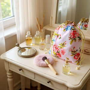 Bring a breath of fresh air to your gifting experience with the Floral Potli Bags, crafted from luxuriously smooth satin and adorned with soft, blooming floral prints. These potlis are designed for those who appreciate subtle beauty and graceful elegance—perfect for both festive occasions and everyday charm. Premium-quality satin fabric with a silky finish and light sheen. Delicate all-over floral print featuring blooming peonies and hydrangeas in romantic shades Finely stitched with gold lace trim for an added touch of richness. Smooth drawstring closure in matching colors for secure and stylish tying Ideal for storing dry fruits, cosmetics, jewelry, mehendi favors, or other small gifting items. A perfect fusion of elegant simplicity and vibrant freshness Reusable and eco-conscious great for sustainable gifting Lightweight and easy to carry, with a neat gathered shape Versatile for weddings, baby showers, return gifts, boutique packaging, and more Wedding & Mehndi favors with a touch of floral elegance Gift packaging for birthdays, anniversaries, or festive hampers Boutique branding or luxury product presentation Bridesmaid gifts or party giveaways.