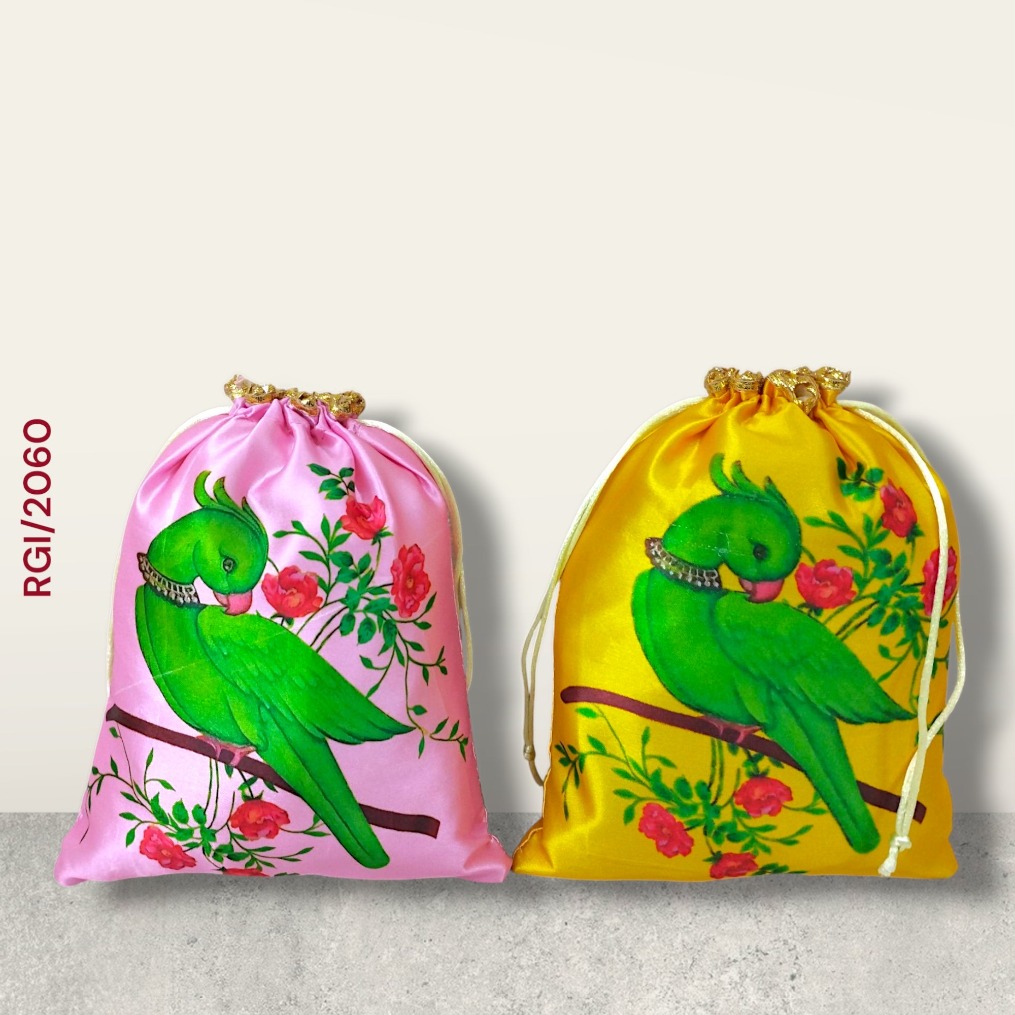 RETURN GIFT ITEMS 500 GMS PARROT DIGITAL PRINT POTLI BAGS