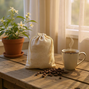 The Jute Potli Bag is a minimalist yet elegant solution for eco-friendly packaging and ethnic gifting. Made from high-quality natural jute in a soft beige tone, this potli strikes a balance between simplicity and sophistication. Natural Jute Texture Woven from fine jute fibers, the bag offers a clean and organic texture. The neutral beige color enhances its earthy appeal, making it a versatile choice for a variety of occasions. Comes with smooth, satin-like matching cream-colored cords that allow easy opening and secure fastening. The drawstrings also add a subtle touch of elegance to the simple design .Made using sustainable materials, this bag is both reusable and biodegradable, making it a responsible choice for environmentally conscious consumers. Ideal for festive gifting, wedding favors, and return gifts. Suitable for storing small accessories or personal items. Great for packaging dry fruits, sweets, spices, or herbal products in a presentable way. Can be customized for promotional giveaways or branded event merchandise. Size: Approx. 7 x 9 inches Color: Natural Beige Material: Eco-friendly jute Simple, Elegant & Reusable Handcrafted Appeal. A charming and natural alternative for presenting dry fruits, sweets, candles, or decorative items during Diwali, Rakhi, Eid, or Christmas.