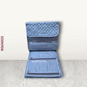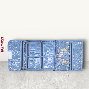 These beautifully quilted wardrobe organizers with elegant floral embroidery are perfect for keeping your clothes, sarees, and essentials neatly arranged while adding a touch of charm. Available in attractive colors like beige, maroon, blue, and grey, they are crafted from durable fabric with a smooth finish that combines utility with style. The flap closure ensures your garments stay protected from dust and maintain their freshness, making them a practical and stylish storage solution for every home.