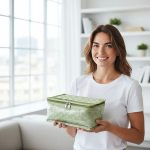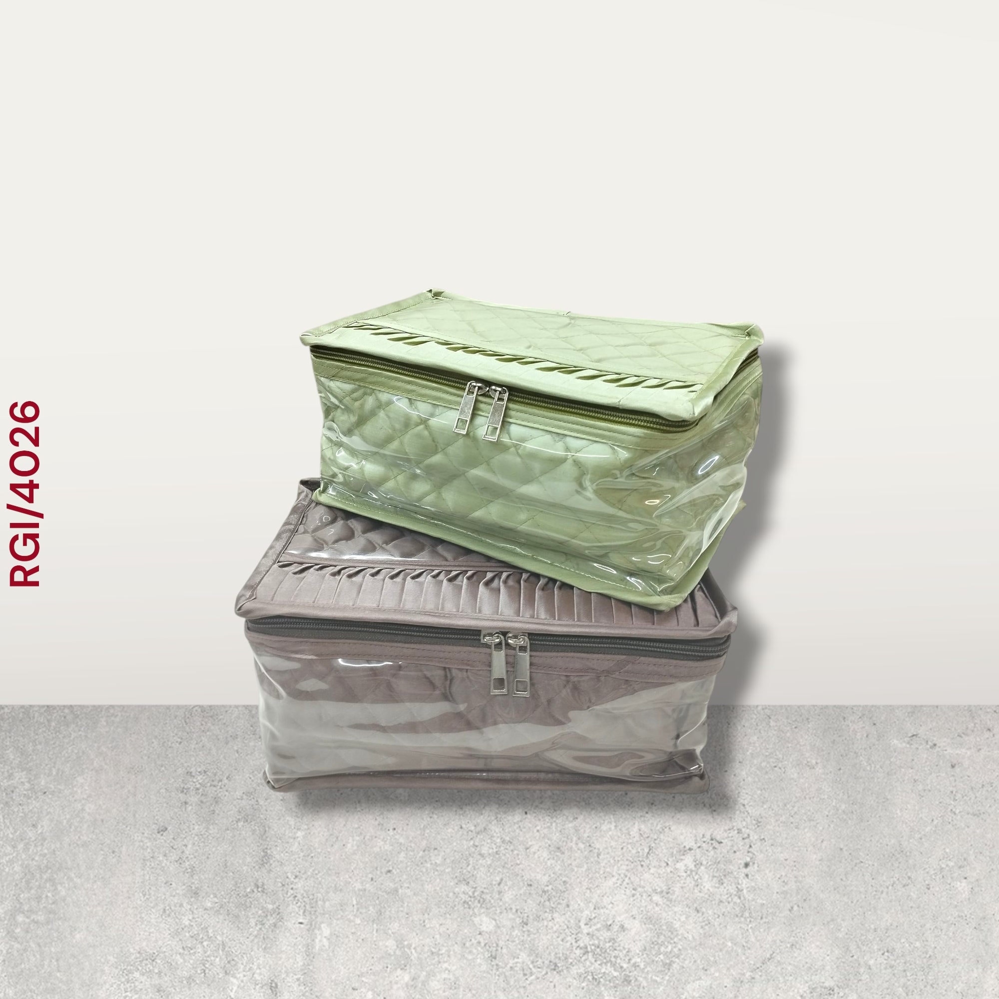 RGI/4026 stylish wardrobe organizers are designed with a quilted fabric top and transparent front for easy visibility. The double zipper closure ensures smooth access while keeping your clothes, sarees, and linens neatly arranged and dust-free. These organizers are lightweight, spacious, and durable, making them perfect for long-term storage and everyday use.