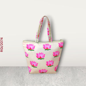 Inspired by the grace and symbolism of the lotus flower, this bag showcases a charming blend of tradition, femininity, and modern elegance. Likely crafted from soft silk or satin-finish fabric, providing a luxurious yet lightweight feel. Pair it with pastel or floral-themed Indian attire for a coordinated look. Ideal for spring/summer festive events due to its bright and airy vibe. Sturdy zipper closure at the top ensures security while maintaining a sleek shape. Festivals, pooja ceremonies, or weddings. A stylish accessory with ethnic outfits like sarees, lehengas, or suits.Pair it with pastel or floral-themed Indian attire for a coordinated look. Ideal for spring/summer festive events due to its bright and airy vibe. A beautiful blend of devotional symbolism and everyday charm, RGI/2074 is the ideal bag for anyone who loves combining tradition with tasteful style Works effortlessly with sarees, lehengas, Anarkali, or fusion Indo-western wear. Can also be styled as a quirky day clutch for events like haldi or sangeet.