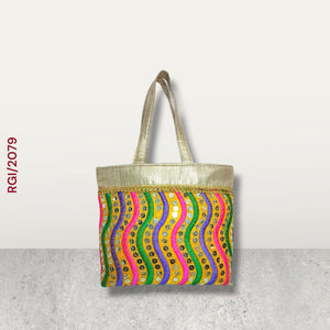 RETURN GIFT ITEMS SEQUINS EMBROIDERY GOLDEN TISSUE HANDBAG