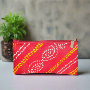 Design and Handle: Silk Hand Pouch with Bandhini Print