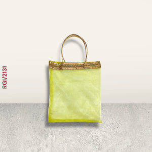 Add a touch of elegance to your gifting with these vibrant pastel organza tote bags adorned with a golden decorative lace border and sturdy golden handles. Perfect for festive giveaways, wedding return gifts, or party favors. Made with premium sheer organza fabric Elegant golden lace detailing Lightweight yet sturdy Available in beautiful pastel shades – Pink, Lavender, Yellow, Aqua Blue, Mint Green Reusable & eco-friendly Weddings | Festivals | Birthdays | Corporate Gifting | Party Favors Standard Medium (Custom sizes available on bulk orders)