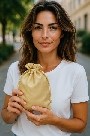 The Potli Bag is a dazzling statement piece that adds sparkle to any festive occasion. Made from lustrous satin fabric, adorned with playful multi-colored woolen pom-poms and glimmering silver gotta lace, this potli is where tradition meets trend. Whether you're preparing return gifts for weddings, festivals, or corporate events, this potli delivers a premium unboxing experience without breaking the budget. Rich, smooth satin that shimmers under light, adding a luxurious touch to any setting Intricately stitched silver gotta lace, bringing a classic Indian festive vibes Contrasting satin cords in vibrant hues Fluffy woolen pom-poms at the ends—hand-tied and multi-colored for a quirky, youthful look Each color evokes warmth, celebration, and elegance—perfect for ethnic themes or modern gifting. Up to 100 grams (ideal for small dry fruits, chocolates, or trinkets) Compact & Lightweight Great for bulk gifting without bulk logistics Weddings: Haldi, Mehndi, Sangeet & Reception favors Festivals: Diwali, Raksha Bandhan, Eid, Navratri, Karva Chauth Baby Showers & Anniversaries: Add a colorful surprise to your party giveaways Corporate Gifting: Add ethnic flair to brand gifting with dry fruits or sweets Boutique Packaging: Perfect for jewelry, mini soaps, herbal mixes, etc. Eye-catching traditional-meets-modern design Reusable and eco-conscious Lightweight yet durable satin Adds festive charm to any gift perfect for bulk gifting orders.